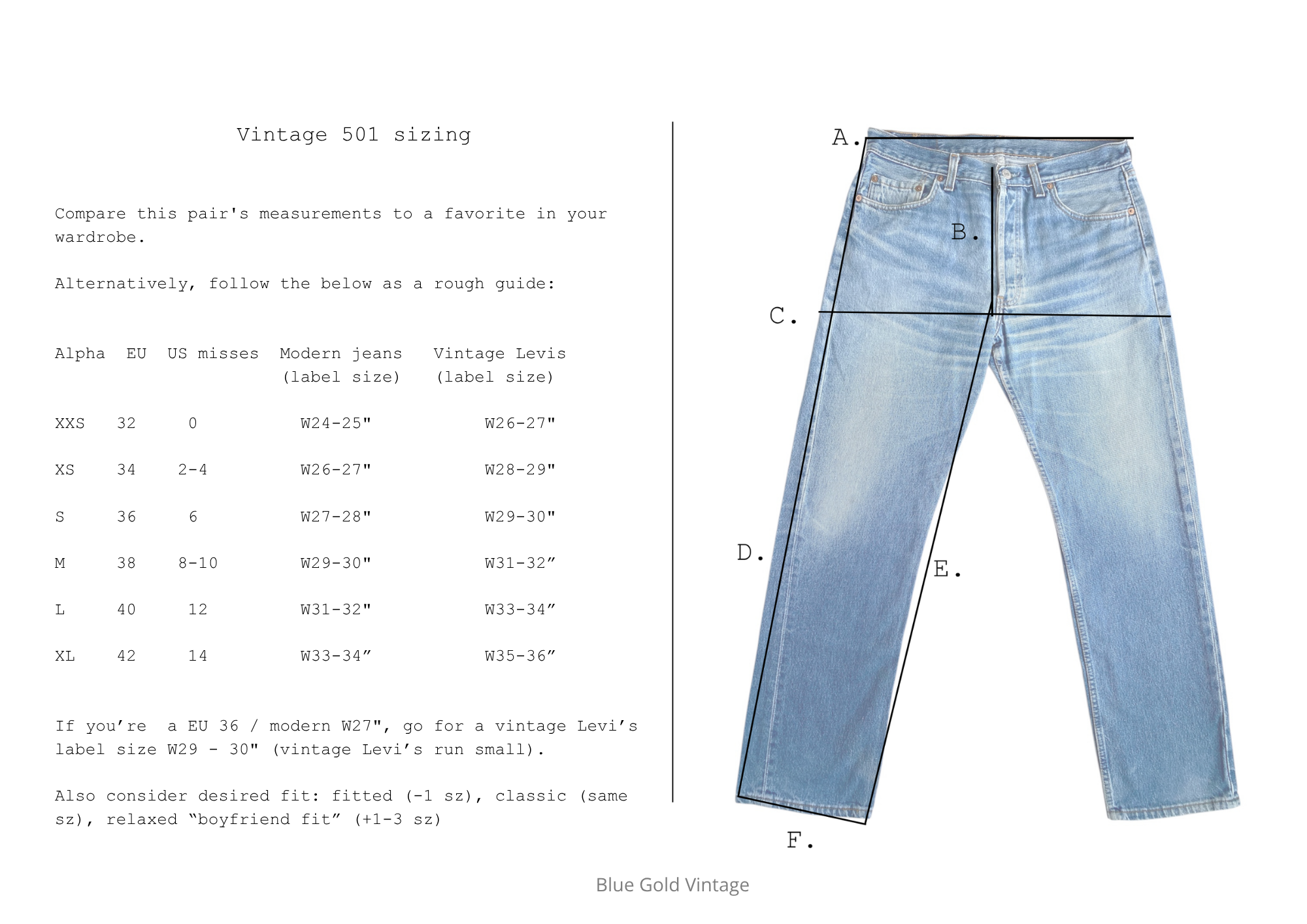 OBS! Bemærk, at vintage jeans ofte afviger fra deres oprindelige størrelse som følge af krympning og slid over tid!!